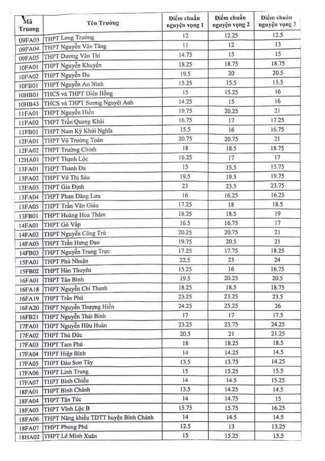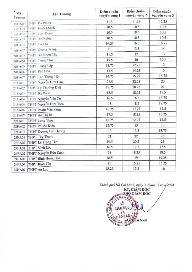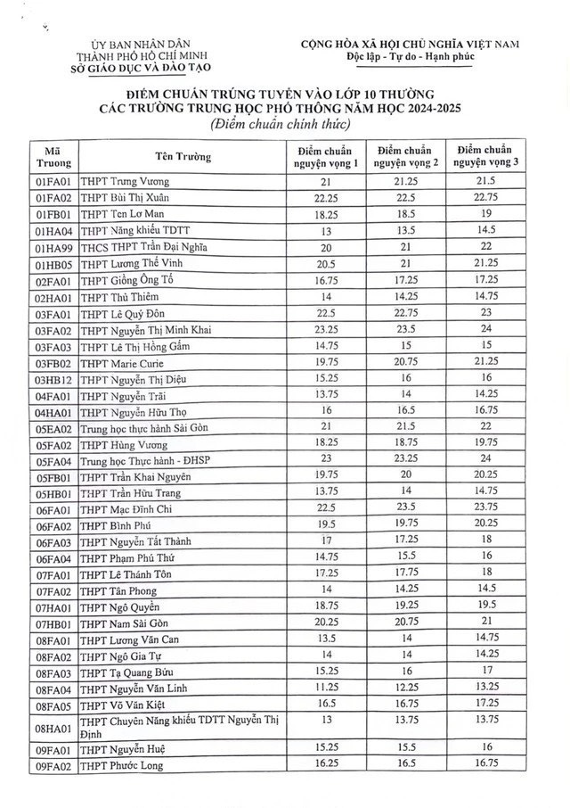 Điểm chuẩn tuyển sinh vào lớp 10 các lớp thường năm học 2024 - 2025